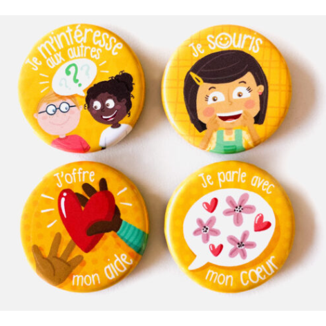 Les 4 aimants Mes défis de bienveillance ont été pensés dans le but d?ouvrir ton mini aux autres. On le sait, c?est pas toujours facile de se mettre à la place des autres ni d?apporter son aide. Alors on s?est dit qu?avec ce kit, on pourrait aider nos minis à faire le bien autour d?eux!